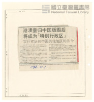 港澳重歸中國版圖後將成為「特別行政區」報紙 |