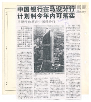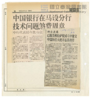 中國銀行在馬設分行技術問題煞費周章中行代表團今抵馬設法克服難題報紙 |